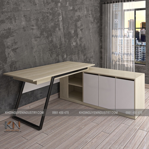 -Bàn được thiết kế kèm tủ phụ để cất giữ những tài liệu hoặc vật dụng cá nhân, tăng diện tích sử dụng.