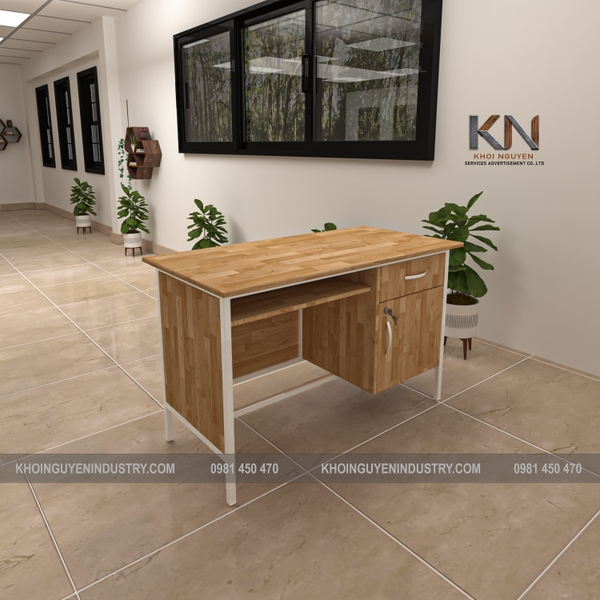 4.Đặc ĐIểm: Bàn được thiết kế gồm 1 tủ mở, 1 hộc kéo có khóa riêng và 1 ngăn để đồ