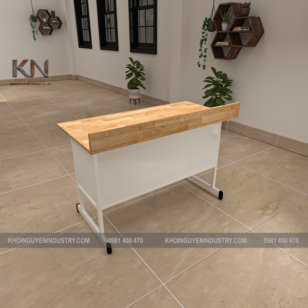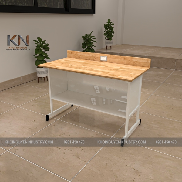 3.Chất Liệu: Khung bàn sắt sơn tĩnh điện, mặt bàn gỗ Cao su ghép