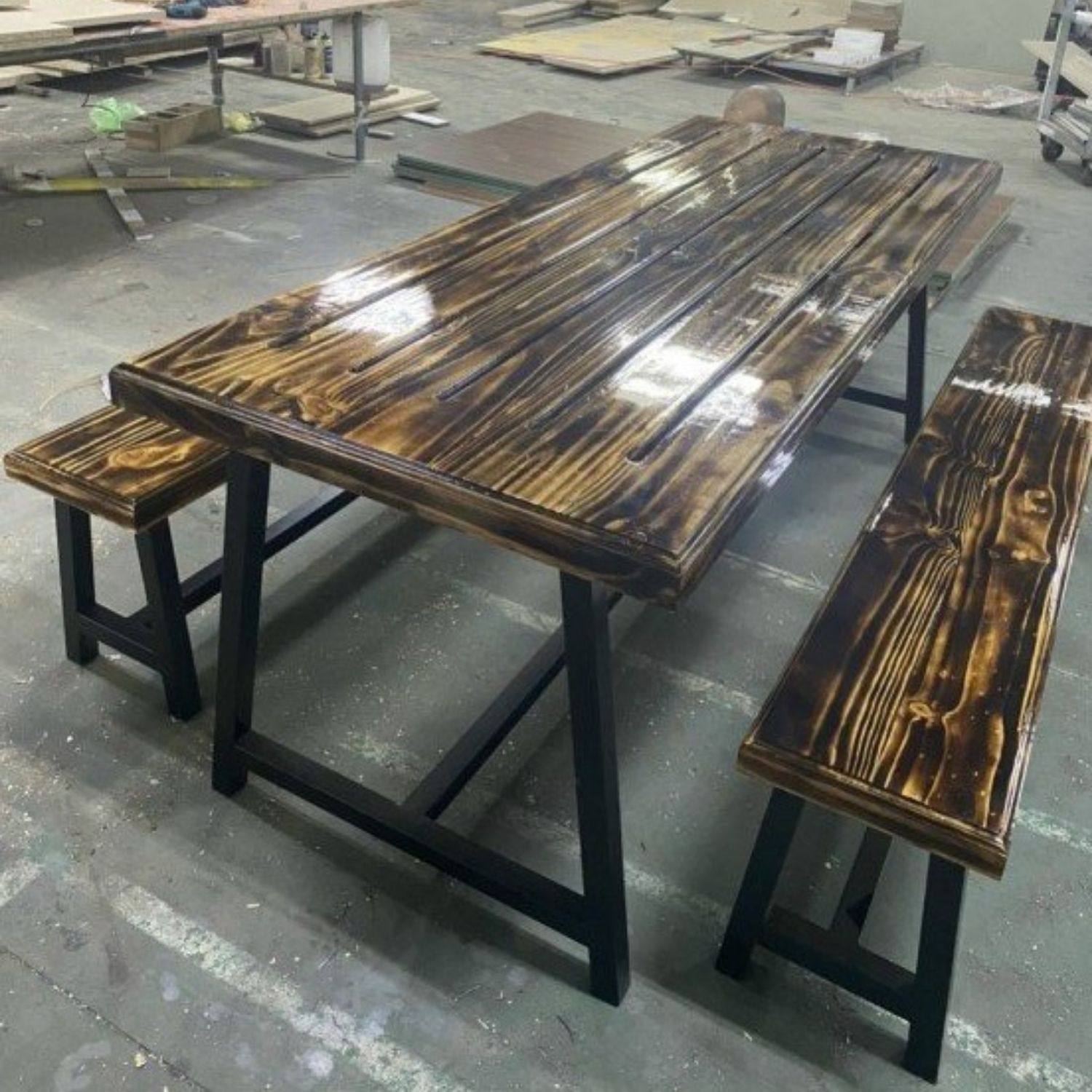 CHẤT LIỆU: Chân sắt hộp sơn tĩnh điện, mặt bàn ghế gỗ thông sơn PU
