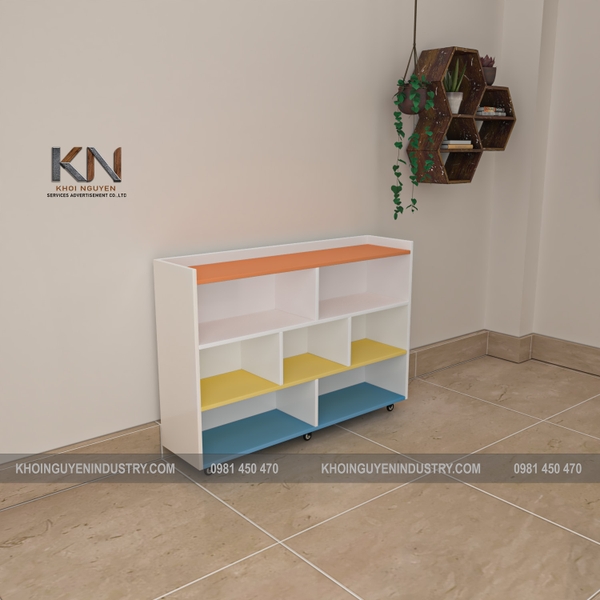 - Kệ mầm non sử dụng chất liệu MDF phủ melamine hạn chế trầy xước, dễ lau chùi.