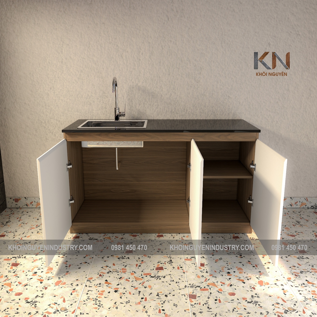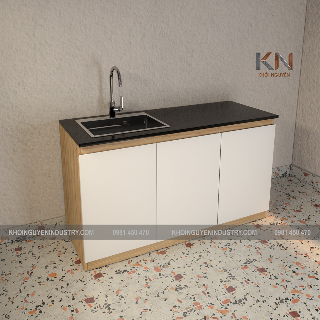 CHẤT LIỆU: Gỗ công nghiệp MDF phủ melmaine chống trầy, mặt bếp đá đen nhân tạo