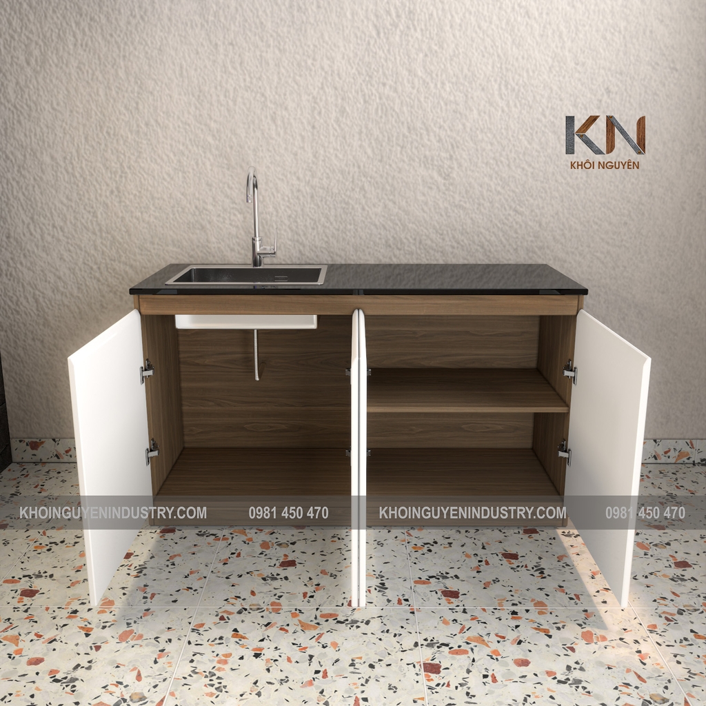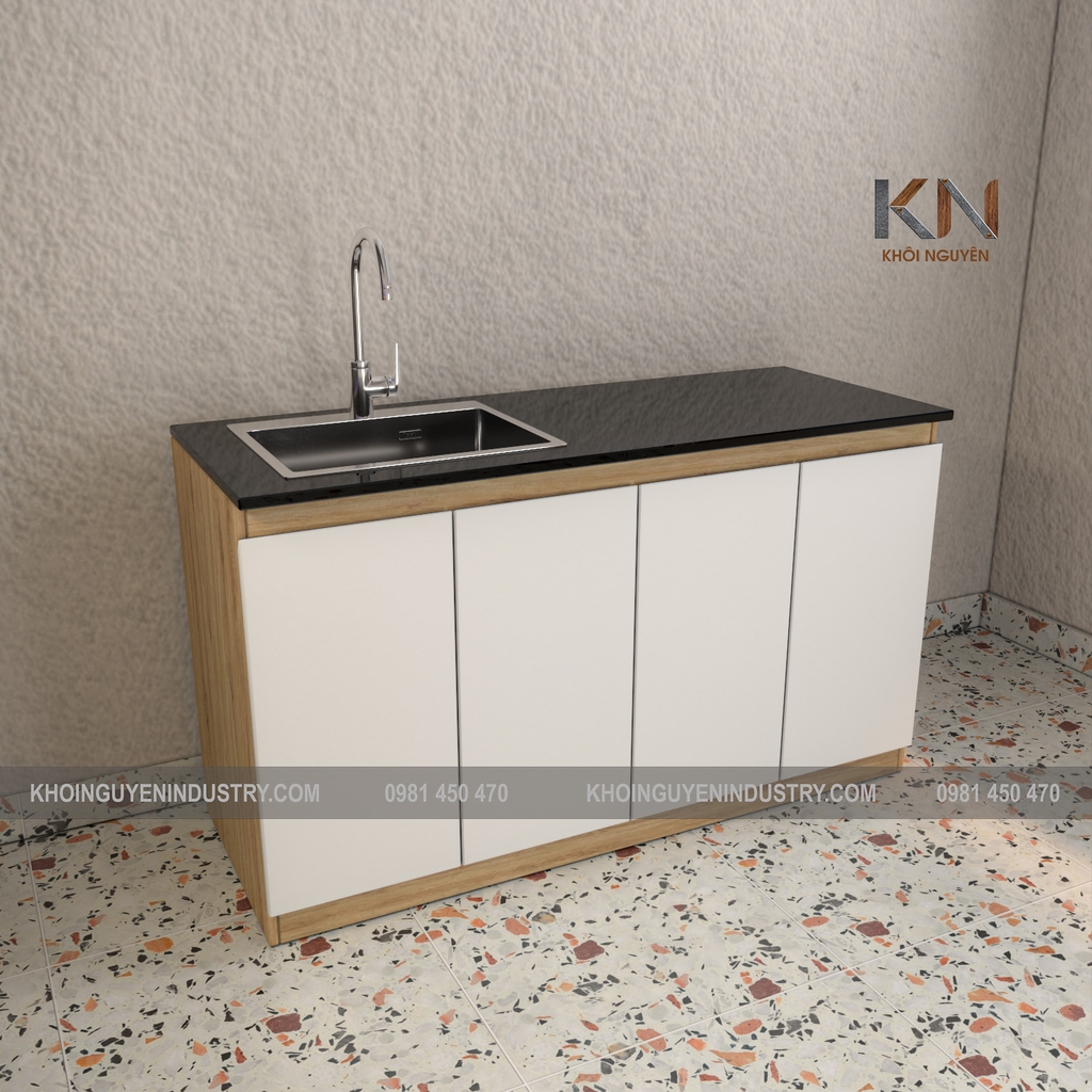 CHẤT LIỆU: Gỗ công nghiệp MDF phủ melamine chống trầy, mặt bếp đá đen nhân tạo
